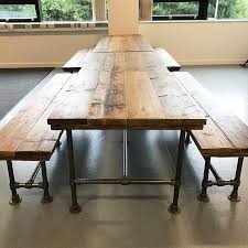 We have a large range of metal dining tables with thick chunky wooden table tops so you can select the leg you want and the size you want of table.